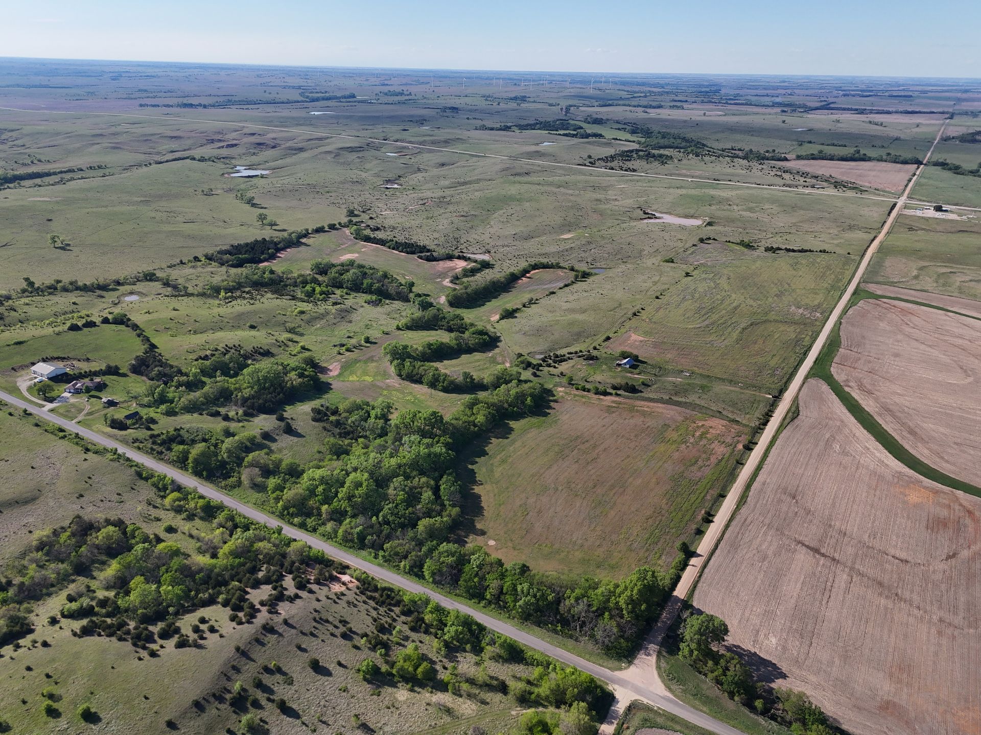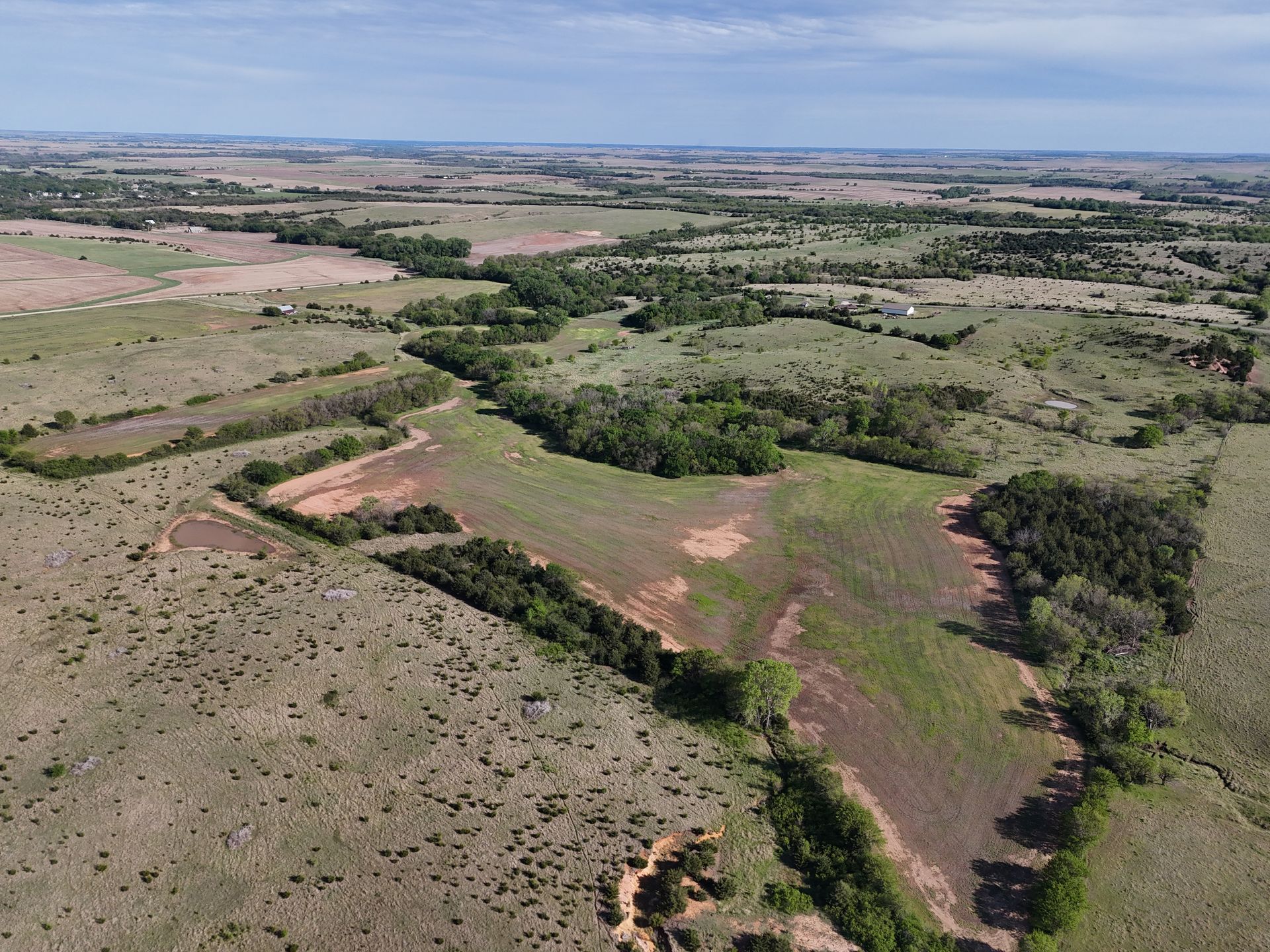 Multiple water sources run throughout, providing reliable support for cattle and enhancing wildlife activity. The mix of open grass, scattered timber, and natural draws creates prime habitat—making this a standout hunting property with strong deer and upland bird potential.