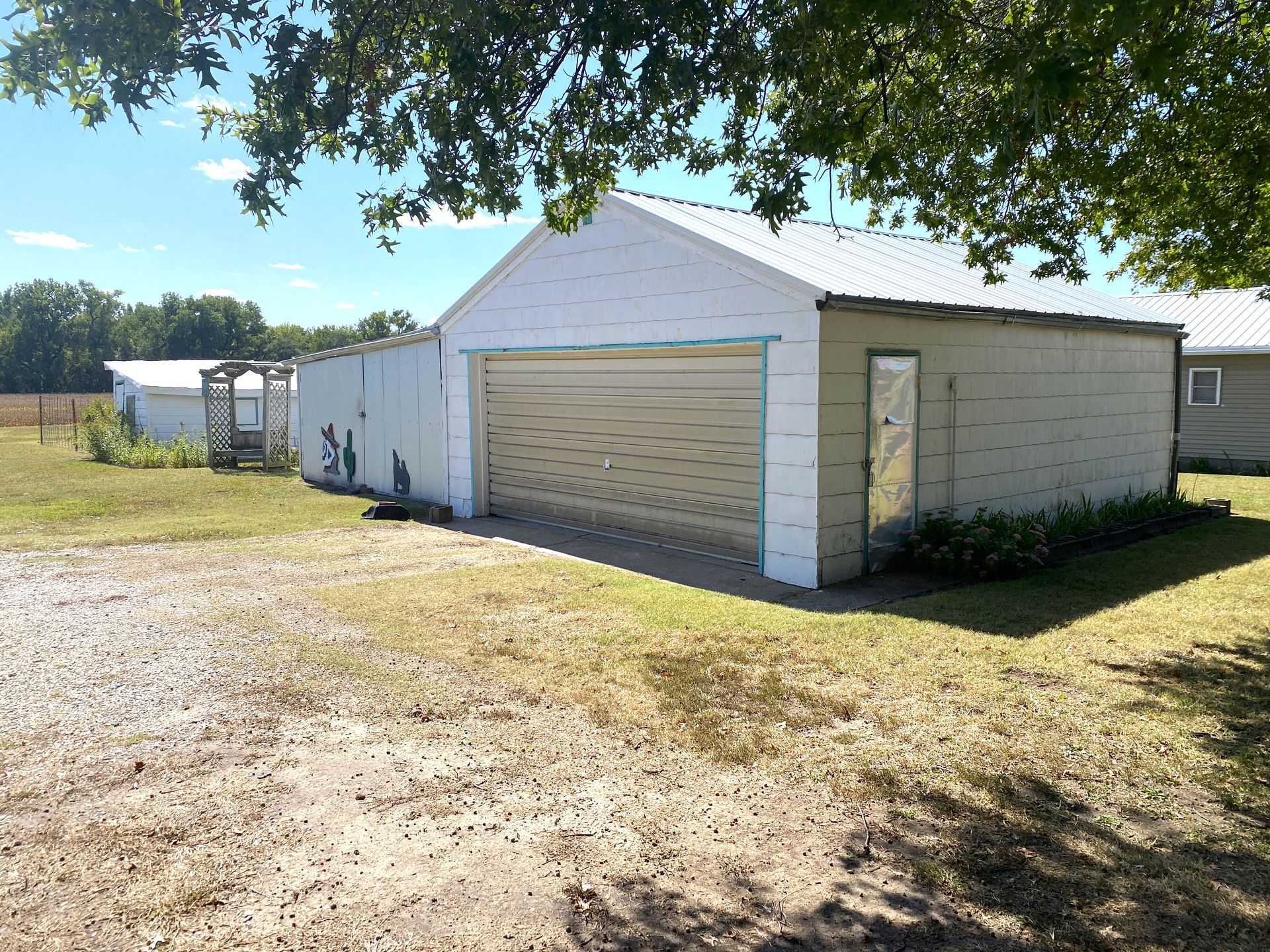 Charming 2-Bedroom Home with Garage & Extra Space – 718 Lincoln St, Clyde, KS. This well-kept 2-bedroom, 1-bath home sits on a large 1 ½ lot in a quiet Clyde neighborhood. Built in 1900, the home has great character and plenty of room to make it your own. The two bedrooms are connected by a Jack and Jill bathroom. The home is clean, recently painted, and had all new windows installed last year. A covered two-sided porch adds a nice touch for relaxing outdoors. There’s also a spacious 700 sq ft unfinished attic — perfect for storage or future living space. Outside, you’ll find a 2-car detached garage and a large yard with room to garden, play, or add on. Some parts of the home are dated, but it’s move-in ready with lots of potential.